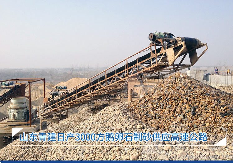 本项目为当地大型生产项目,成品将用于桥梁、道路、房屋等当地基础设施项目的建设。鹅卵石加工产量在100-300t/h,进料粒度小于200mm,出料粒度在0-5mm之间。